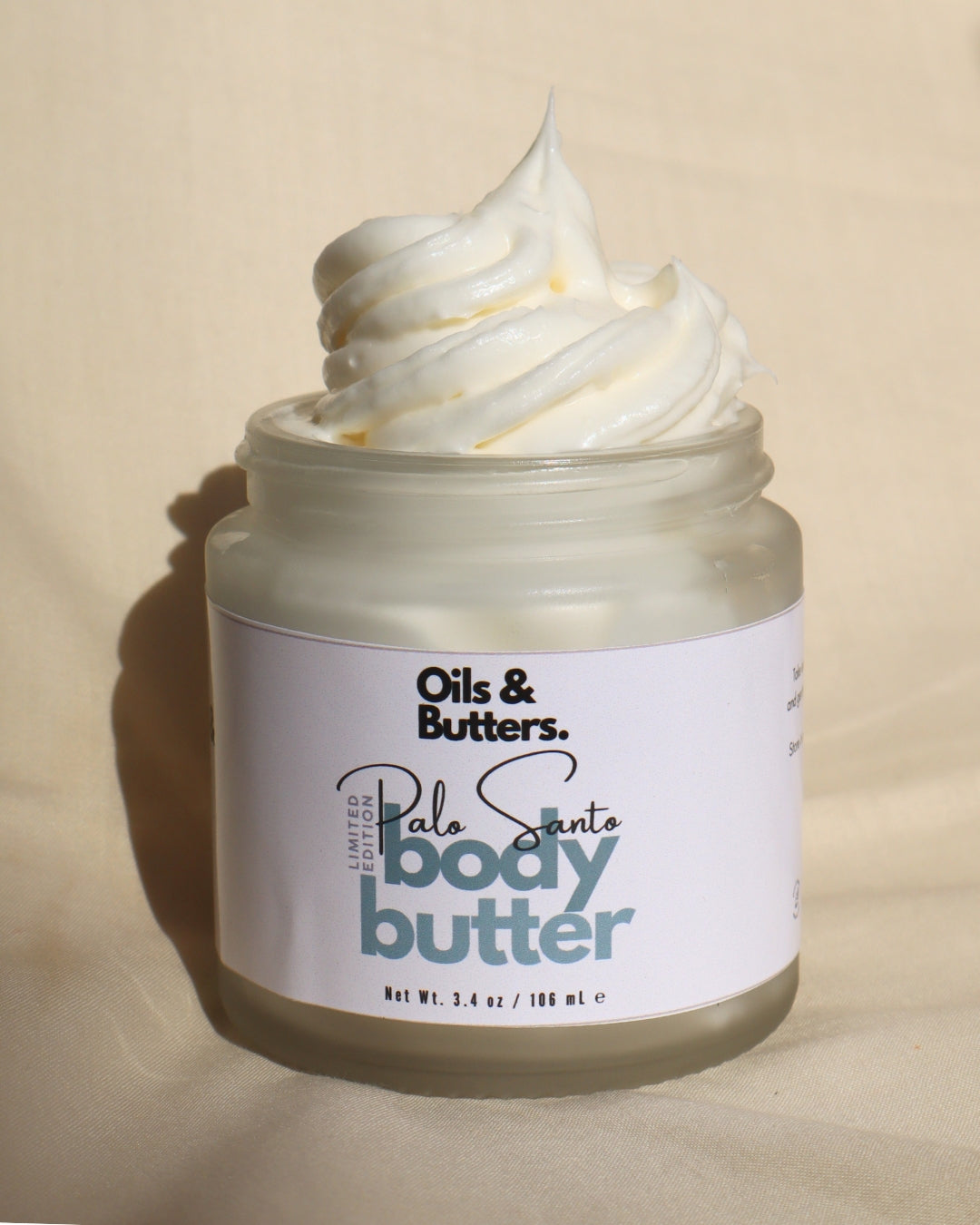 Our limited-edition Palo Santo Body Butter works differently. Infused with Shea Butter, Avocado Oil, Vitamin E, and the calming essence of Palo Santo, it nourishes and repairs from within, so your skin stays soft, resilient, and protected. Its natural anti-inflammatory properties soothe stressed or compromised skin, while the oil-based formula locks in long-lasting hydration without irritation. Free from harsh chemicals and synthetic additives, it strengthens your skin’s natural barrier safely and effectively repairing naturally